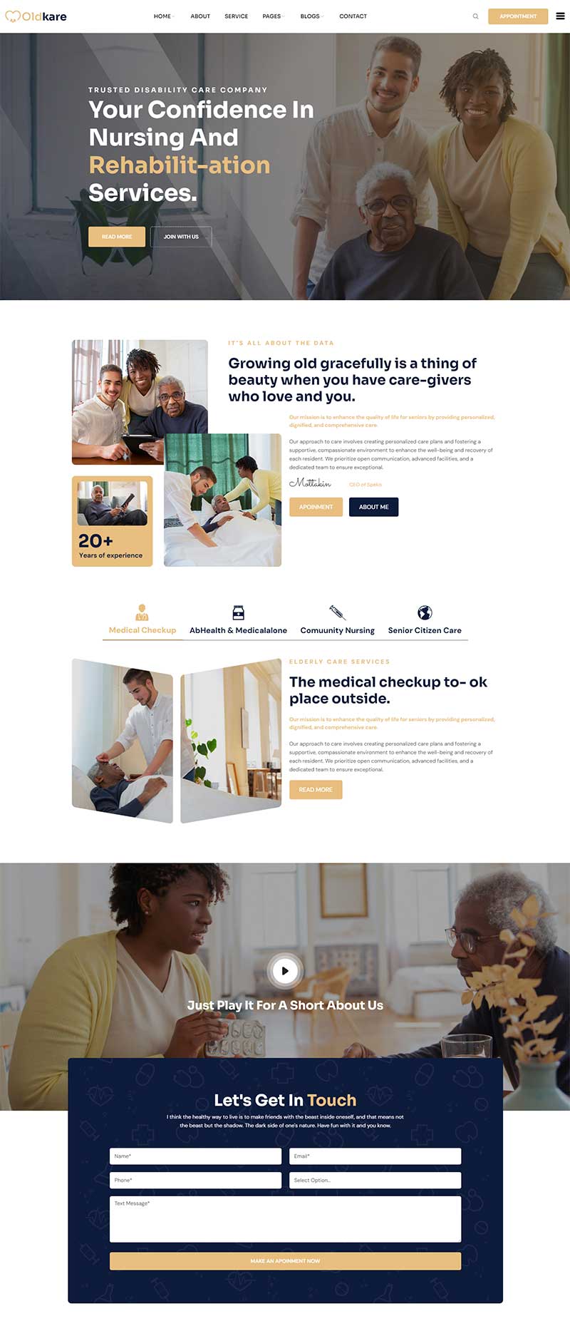 响应式康复机构养老院网页模板,适配多种设备,页面设计温馨亲和。清晰展示服务内容与环境设施,为养老康复机构打造优质宣传窗口。