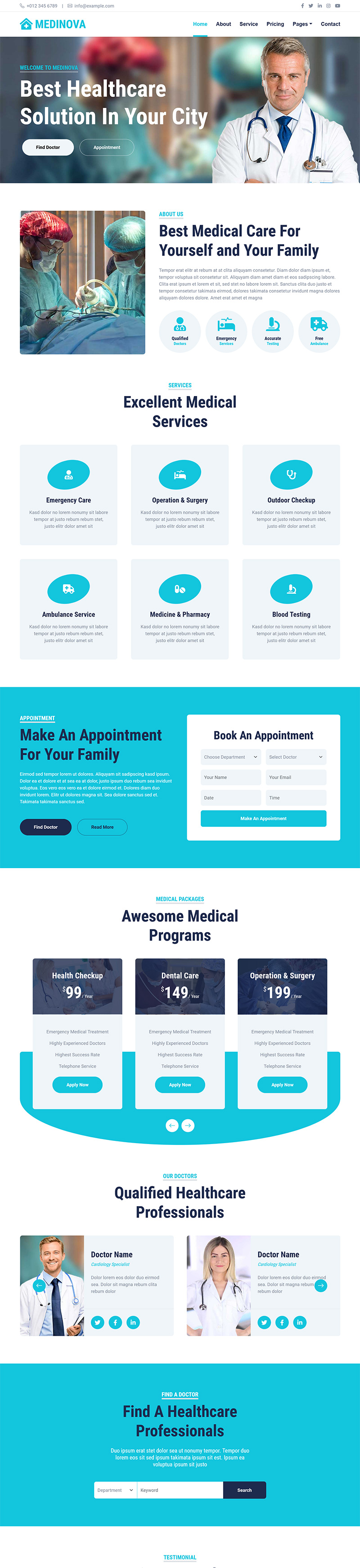 这是一款医疗护理保健方案的html模板,在当今社会中,健康已经成为人们越来越关注的问题。为了更好地满足人们对医疗护理保健的需求,以便更好地为用户提供专业的医疗护理方案。该模板的设计风格简洁大方,采用了医疗行业常用的蓝白色调,整体感觉非常专业。同时,网页中添加了大量的图片和图表,以便更好地展示医疗护理保健方案的内容和特点。此外,还为用户提供了多种交互方式,包括在线预约、咨询等,以便更好地满足不同用户的需求。该模板通过不断的优化和改进,页面的加载速度更快,功能更加完善。这是一款优秀的医疗html模板。