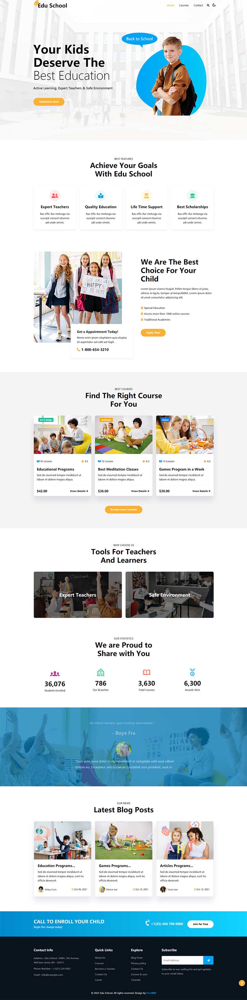 学校教育培训兴趣班网站html模板