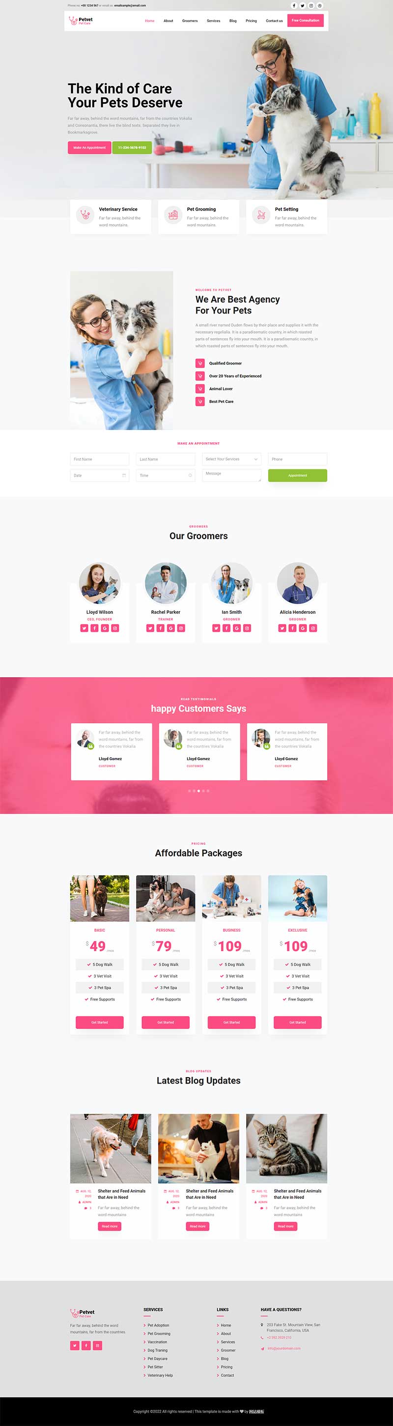 宠物诊所宠物医院html网站模板,宠物相关的行业都可以套用,比如宠物饲料,宠物绳具,宠物知识分享等。