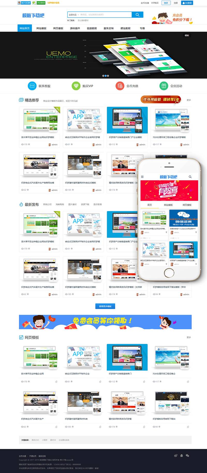 码库网_精品网站模板_精品html模板_精品小程序模板_精品开源源码 » 模板资源下载类网站模板(带会员中心)(PC+WAP)