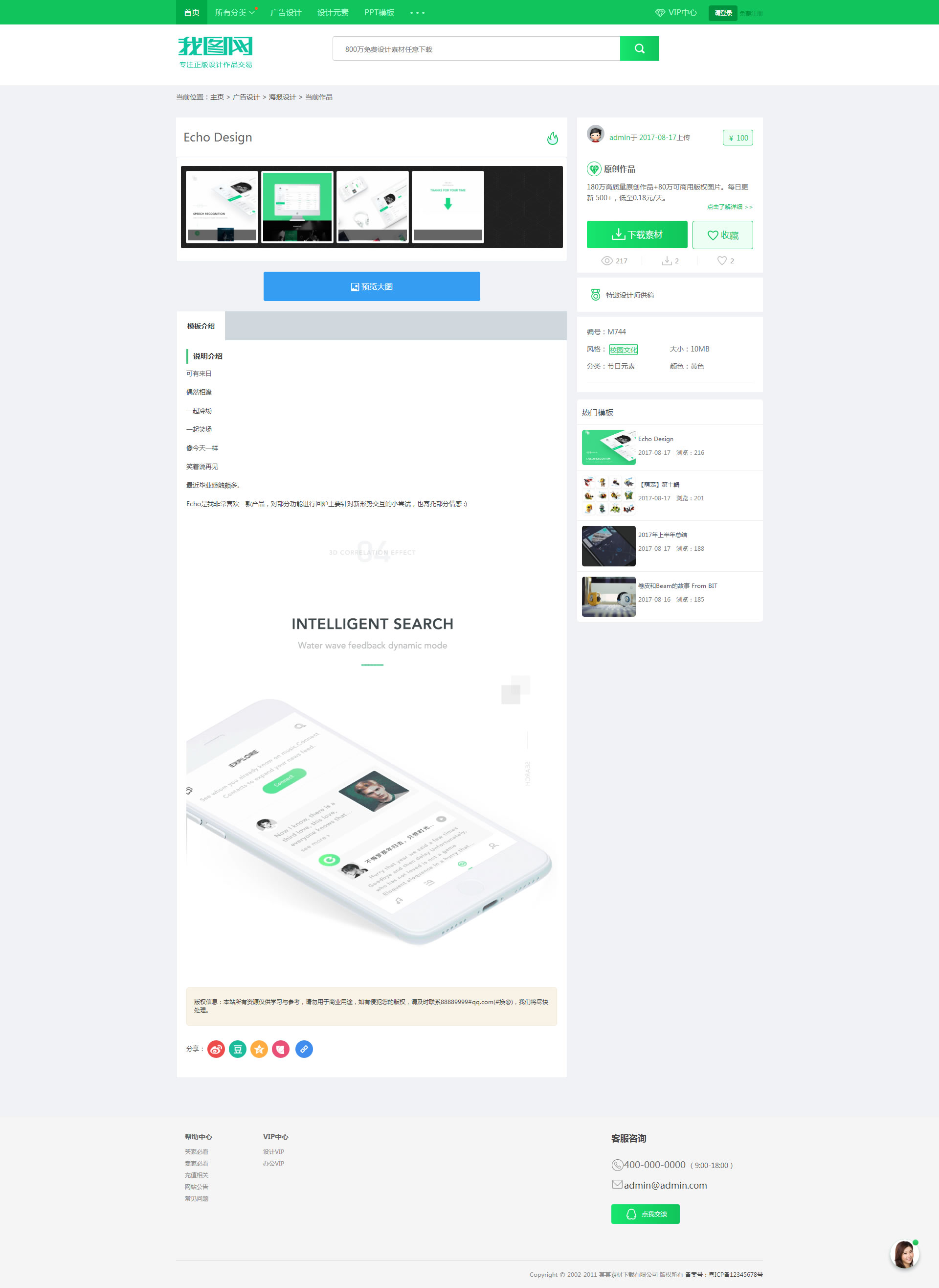 绿色仿《我图网》素材资源下载类织梦网站模板