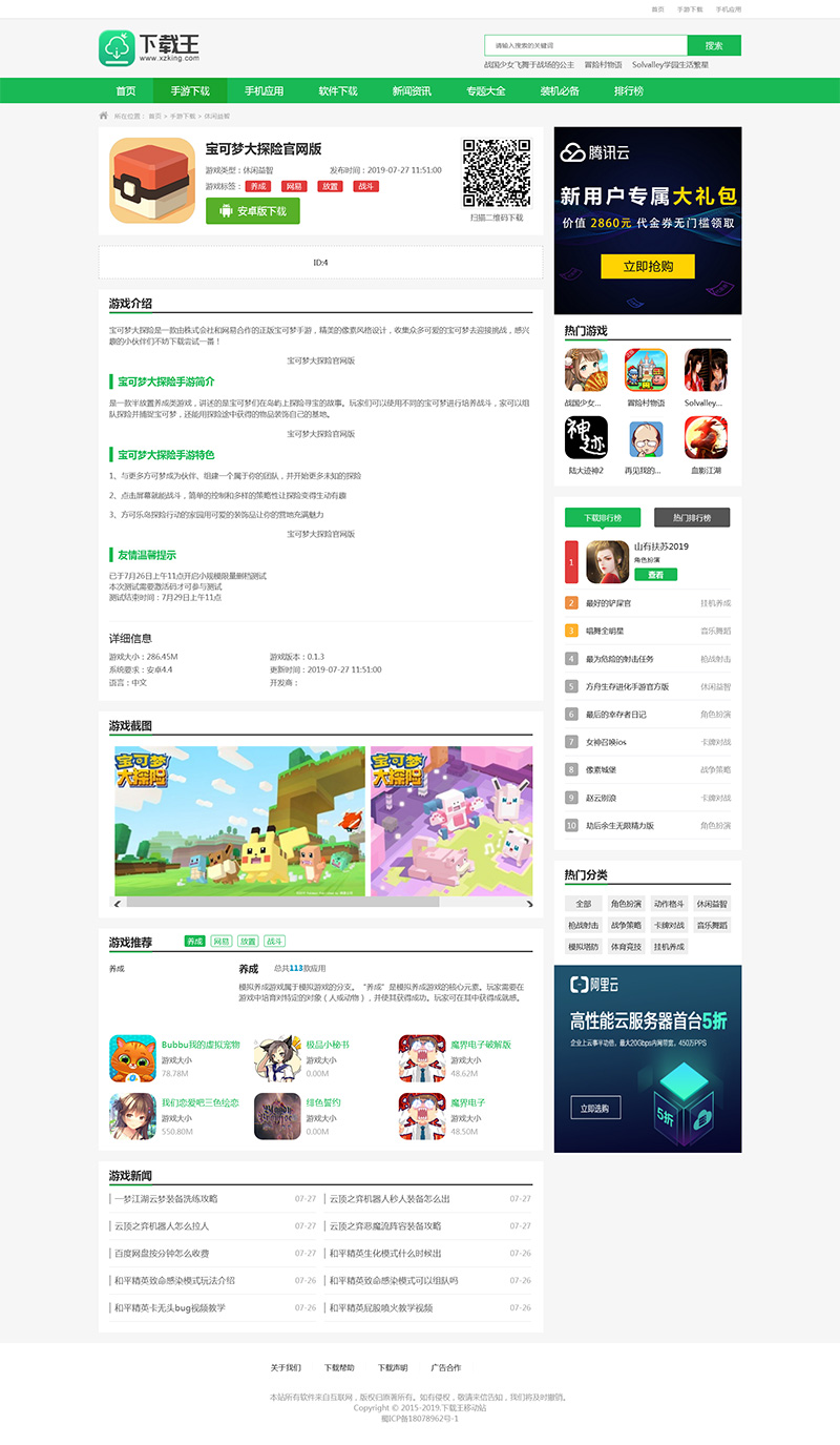 软件下载网站模板找了许久,发现没多少好看的,这套还可以,绿色大气,页面美观,适合做一个优秀的软件下载站或游戏应用下载站网站模板。