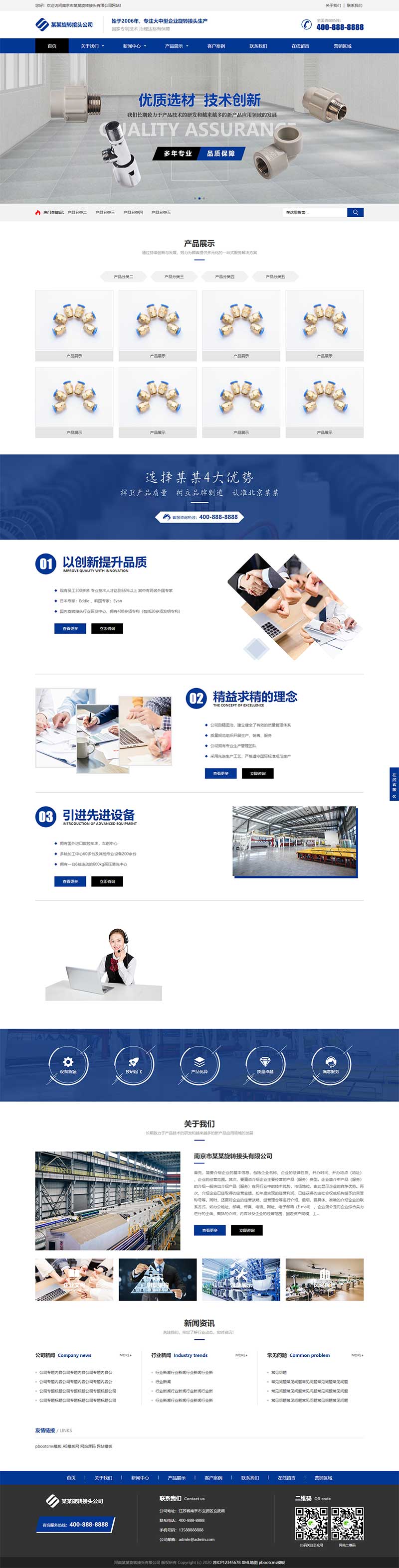 (自适应移动端)五金零配件生产企业网站模板下载。该模板采用pbootcms开源内核,可商用无版权问题。