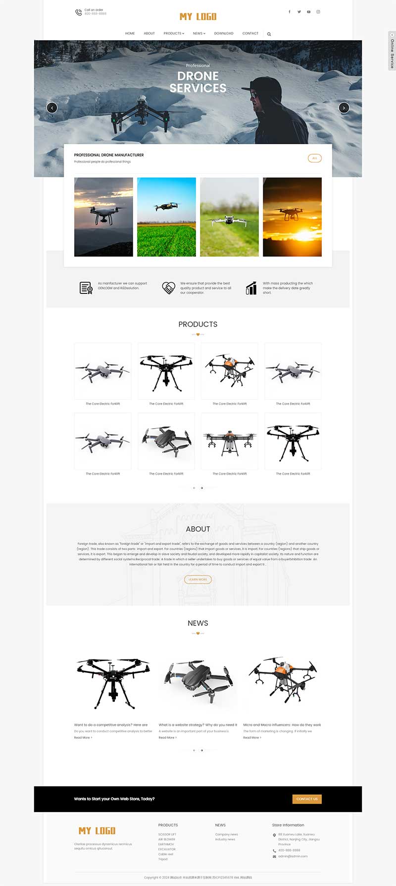码库网_精品网站模板_精品html模板_精品小程序模板_精品开源源码 » 响应式无人机英文外贸企业pbootcms网站模板