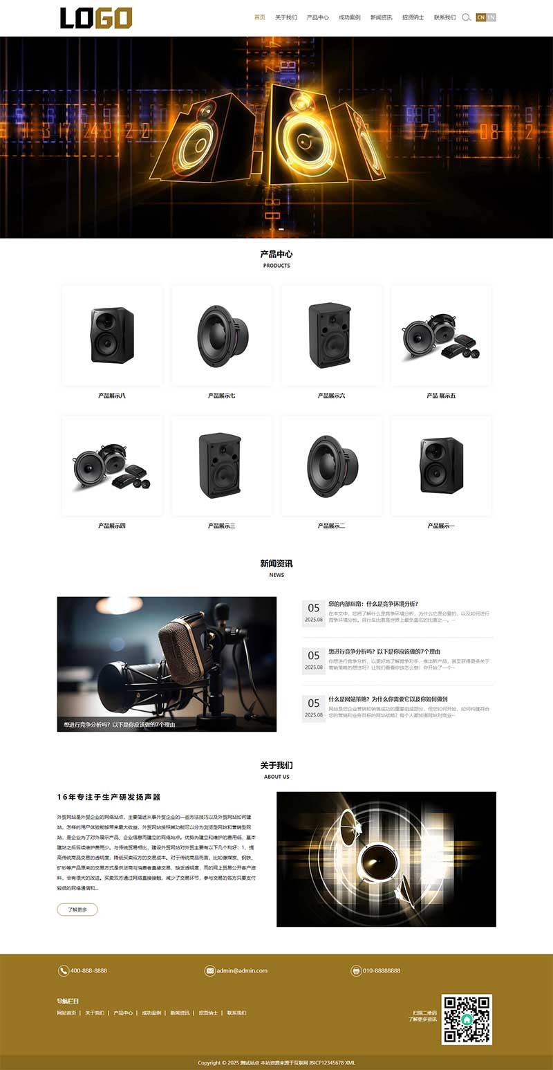 (自适应手机端)中英双语扬声器音响外贸网站模板