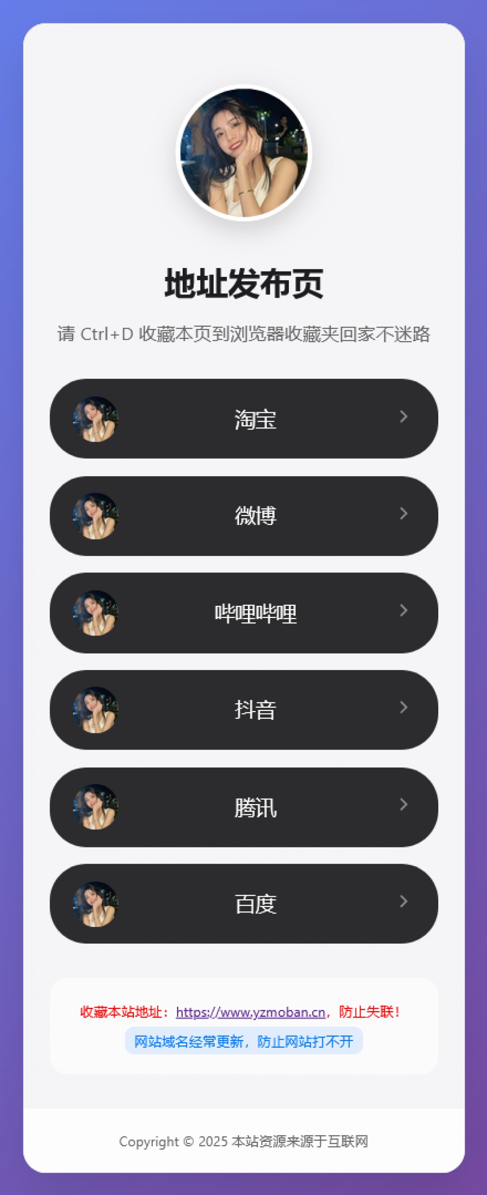 PbootCMS内核开发的网站模板,该模板适用于网址发布页、引导页网站等行业,移动端简洁美观,网址发布数量不受限制。其他行业也可以做,只需要把文字图片换成其他行业的即可;