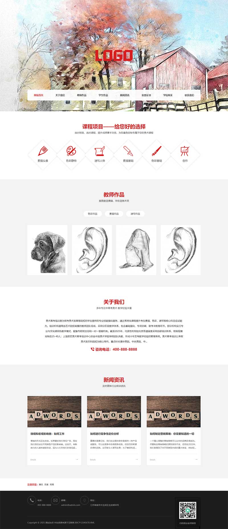 这是一款基于PbootCMS内核开发的网站模板,适用于美术培训、画室画廊等网站,也适用于其他行业(需替换文字图片)。