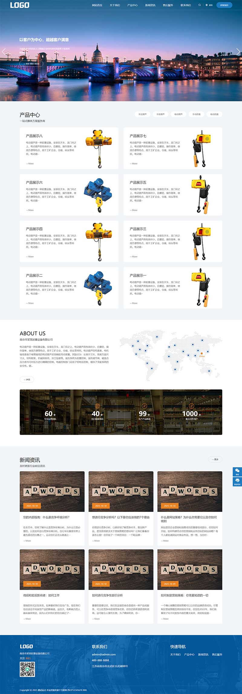 码库网_精品网站模板_精品html模板_精品小程序模板_精品开源源码 » (自适应)电动葫芦起重设备网站模板下载