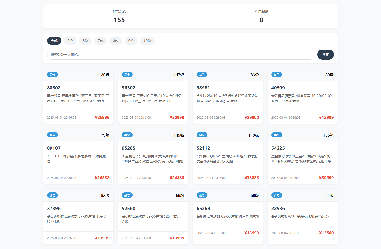 码库网_精品网站模板_精品html模板_精品小程序模板_精品开源源码 » 扣扣号码售卖展示系统源码 全开源