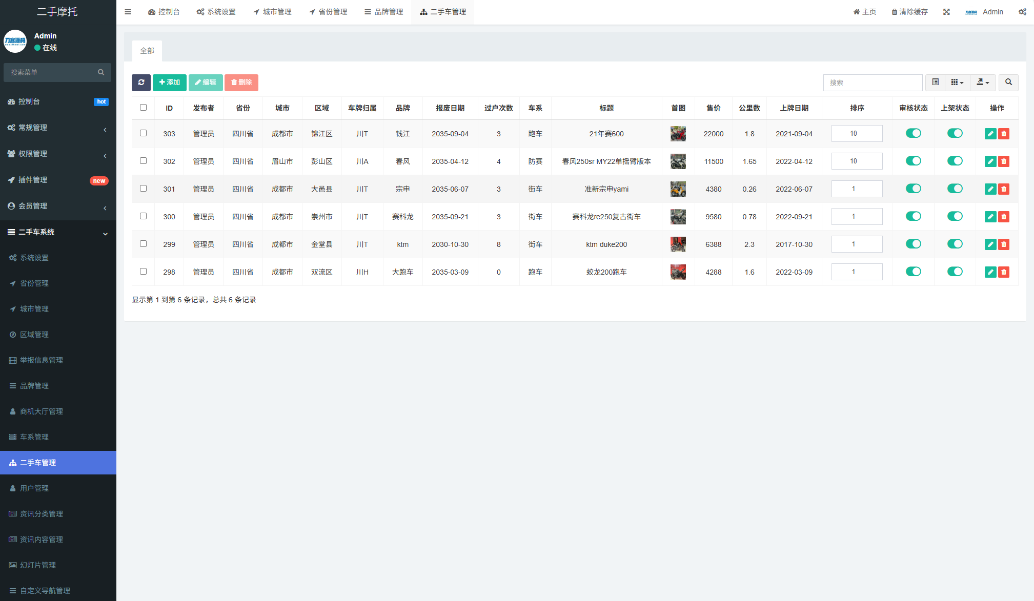 基于FastAdmin框架开发,专为摩托车经销商/个人卖家定制,支持二手摩托车高效展示与交易。